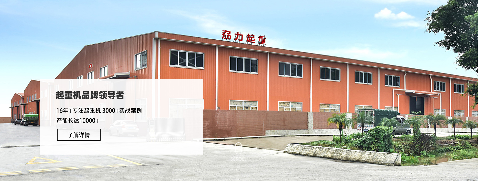 廣東劦力重型起重機(jī)械有限公司2008年成立,位于廣東省中山市西區(qū)彩虹大道113號(hào),生產(chǎn)基地位于廣東省江門市新會(huì)區(qū)雙水鎮(zhèn)富美工業(yè)區(qū),公司占地面積10000余平方米,各種生產(chǎn)檢測(cè)設(shè)備100多臺(tái),員工160余人,其中高級(jí)專業(yè)技術(shù)管理人員30多人。